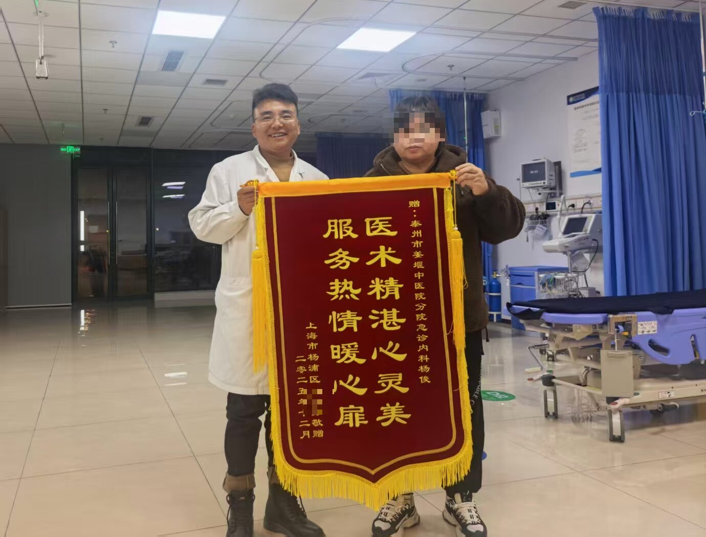 除了争分夺秒的抢救,急诊科也有温情的时刻。来自上海的张女士(化名)激动地将印有“医术精湛心灵美 服务热情暖心扉”锦旗送给我院急诊科杨俊医生手中,动情地说:“杨医生,真是太感谢你和你的同事们了!你们不仅看病看的准,治疗效果好,还处处为我们着想,给予我们方便,你们真的太棒了,特别感谢你们!”