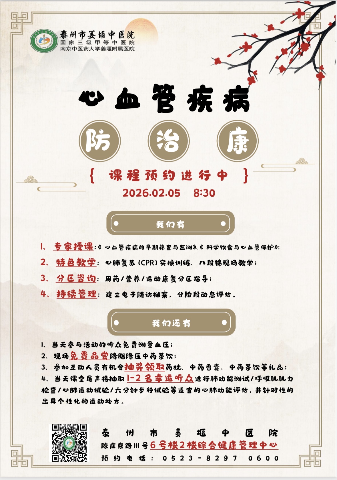 邀请函 —— 2月5日姜堰中医院心血管疾病专家授课预约开始啦~
