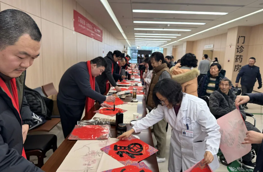 多名知名书法家挥毫泼墨,将新春的祝福化作一副副春联,赠予就诊患者及家属。