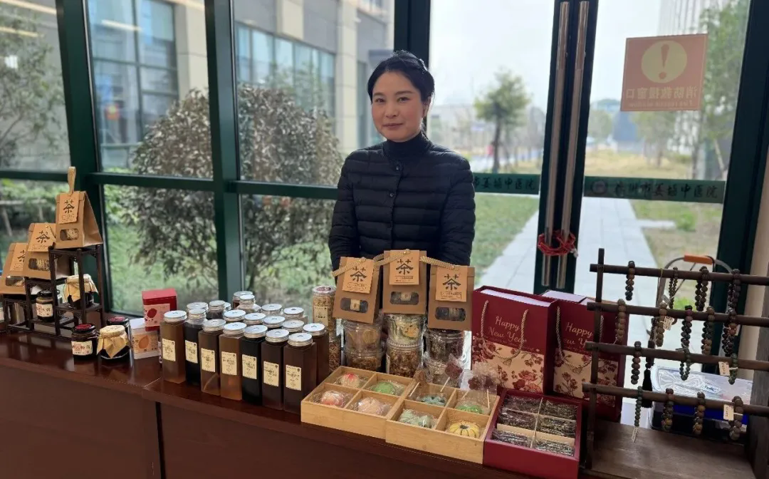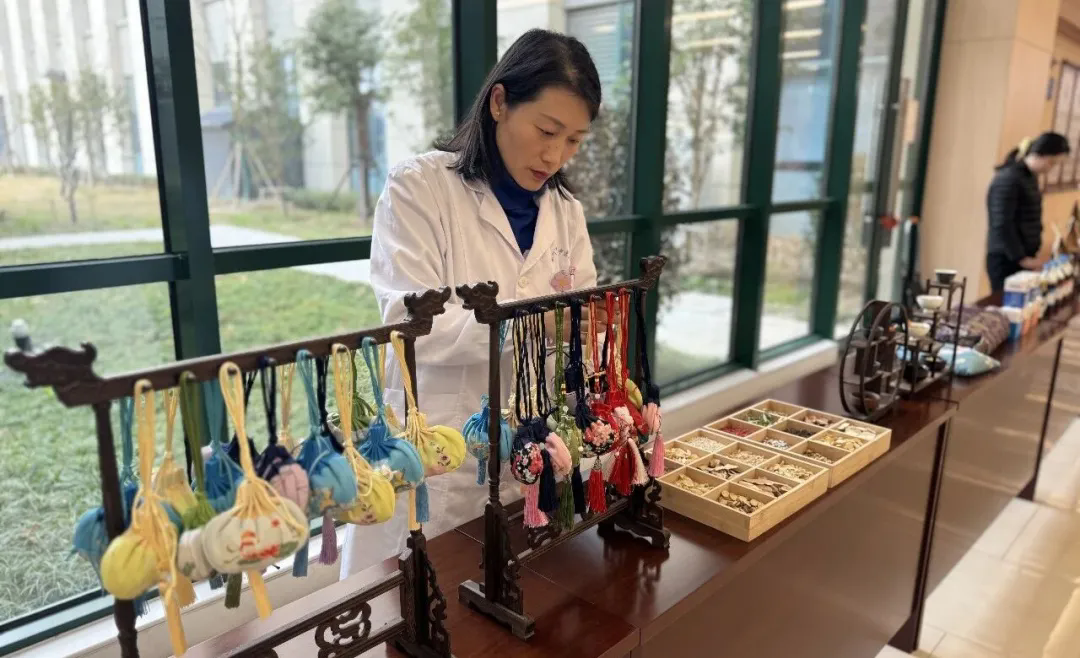 在新院区大厅的专属展示区域,院内自制的香囊、膏方、中药饮片、药枕、足浴包、茶包、防裂膏与体质辨识服务、中药茶饮药膳品鉴多位一体,构成了一幅生动的中医药健康服务图景。