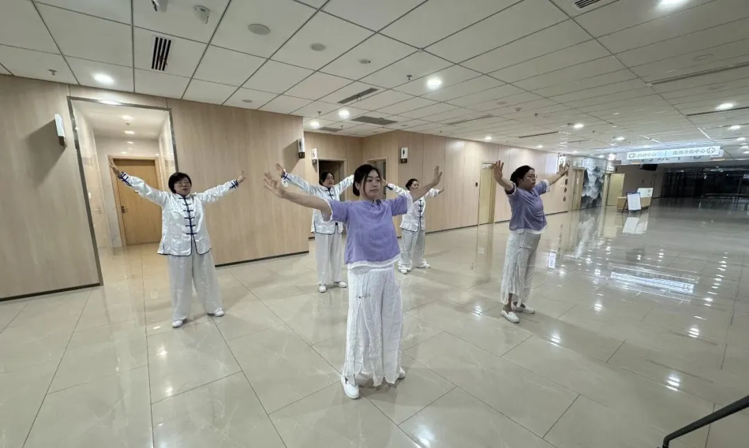 互动环节,大家跟随专业医师学习八段锦、心肺复苏实操。