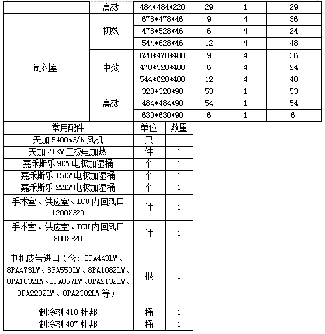 维保范围:洁净手术部(3、4、5、6、10)、ICU、设备机房、制剂室。