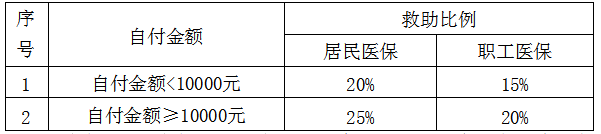 救助金额=自付金额×救助比例,其中居民医保个人每年度不超过4000元,职工医保个人每年度不超过3000元。
